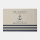 Nautical welkomstdeurmat is voorzien van een bootanker in kuststijl en een stremvormig ontwerp. Pas de douanetekst met een familienaam en een strandhuis (of een andere titel) met het gevestigde jaar aan. Schildblauw en toegankelijk beige kleurenschema.