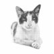 Halftone Calico Charm: A halftone-style illustration of a calico cat derived from a real photograph In a seated position. The design renders the cat's markings and contours using varied dot size and spacing to suggest tone and texture while keeping a clean, graphic silhouette. “This design is customizable. Click the *EDIT THIS DESIGN* button to personalize the design. You can move elements, resize and add your own text or your design.” Enjoy creating your unique design!