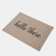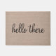 hallo er is een grappig citaat gezegde hipster humor faux linen burlap jute background doormat.