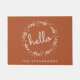 Welkom jullie bezoekers met dit stijlvolle terracotta doormat met een eenvoudige florale kreet over de hele wereld Hallo. Pas het aan met jouw naam.