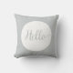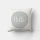 Dit schattige manuscript typografische "hallo"kussen is in een zacht grijs en wit omkeerbaar patroonthema.
