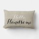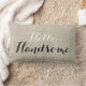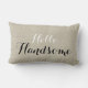 Robuust maar hedendaags chemisch ontwerp, met zwarte manuscripttekst. Motivatie gooi kussen met de woorden "Hallo Handsome". Een PRINTED beige linen foto effect achtergrond. Linen bekijk aangepaste lifestyle-aanmoediging - Positief advies - Sierkussen - voor uw thuisdecor-oplossingen. Elke Clarke© Meer stijlen en kleuren zijn beschikbaar in onze winkel op www.zazzle.com/monogramgallery. Ideaal voor je slaapkamer, favoriete stoel, als leuke decor in je huiskamer of formele decoratieve aanvulling op je woonkamer.