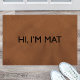 Belachelijk grappig, "Hi, I'm Mat" op een lichtbruine faux lederen achtergrond.