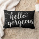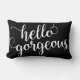 Dit ontwerp kenmerkt de uitdrukking "hallo schitterend"in een witte, moderne manuscripttypografie. De Pillow kleur kan gemakkelijk worden aangepast om uw decor aan te passen door het te gebruiken pas het hulpmiddel aan.