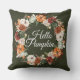 Hallo Pompoen herfst oogst bloemenwit script gooi kussen met salie groene kleur.