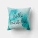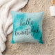 Hallo Prachtig met de hand geletterd waterverfkussen in aqua blauw. Ziet er geweldig uit in de woonkamer of slaapkamer! © Mini Moi Prints