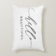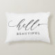 Deze moderne gooi kussens kenmerkt het woord "hallo" in een elegant zwart script met "mooi" onderaan geschreven, of personaliseert het om te zeggen wat je maar wilt. De achtergrondkleur kan ook in om het even welke kleur worden veranderd.