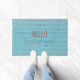 hallo mooie afbeelding en Trendy Boho design Doormat. Dit mooie badmat met een bloeiende stijl is voorzien van een blauwgroen blauw, bruin, gestreept patroon met handgeschreven typografie met de tekst "Hallo Prachtig". U kunt van andere producten in dit collectie mengen en aanpassen. Ontwerp van Bohemian Girl.