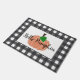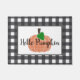 Deze schattige, boerderij stijl deurmat heeft een donkergrijze buffel plaid achtergrond en een klassieke oranje gingham pompoen. Hallo Zegt "Pompoen" of je kunt je personaliseren met jouw naam of een andere zin.