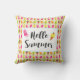 Een kussen met een afbeelding van een zomertijdpatroon van paprika's en ijsjes in waterverven. hallo zomer geschreven in een leuk trendy lettertype.