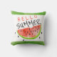 hallo Waterverf Watermelon Green White Sierkussen. Een schattige witte kussen met groene waterverf textuurgrenzen boven en onder en een stuk waterverf watermeloen. hallo is rood en de zomer is zwart. zomerkussen, watermeloenen kussen, watermeloenen patio kussen, kussen van rotsstoelen, zomermeloen, hallo zomerkussen, picknick kussen,