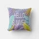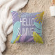 Lavender background met tropische bladeren in pastelkleuren blauw, roze en limoen met aangepast script "hallo zomer"