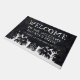 Zwart-wit spookachtige Halloween welkomstdeurmat met de tekst "Welkom in het (familienaam) spookhuis, voer op eigen risico in". Deze deurmat heeft een spookhuis deur, enge bomen met gezichten, katten, vleermuizen, een begraafplaats met grafstenen en een spinnenweb achtergrond.