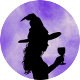 De heksenbril van de douane heeft een bril voor je Halloween-themagebachelorette feest gemaakt. Ze hebben het silhouet van een heks op een rokerige achtergrond.