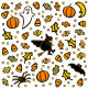 Halloween verjaardagsfeest petten ontwerp, met schattige cupcake, vleermuis, maan, trick-or-treat snoep, pompoen en spin.