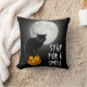 Een zwarte kat met een gloeiende pompoen en volle maan op zwart. De achtergrondkleur kan worden gewijzigd.