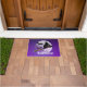 Dit leuke Halloween ontwerp is voorzien van een zwarte kat met een heks pet vliegen in de nacht op een heks bezem omringd door vleermuizen in de voorkant van een volle maan en een tekst gezegde "Happy Halloween".