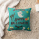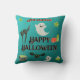 Spectaculair Halloween Party thema op een unieke blauwgroen achtergrond. Versierd met alle klassiekers in een waterverf kunststijl zoals een zwarte poes, vriendelijke geest, pompoenen en meer!