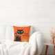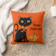 Halloween Cat Pillow in oranje op de voorkant en zwart op de achterkant. Pas dit object aan of koop zoals het is.