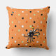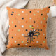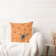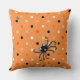 Creatief Halloween decor met leuke swingende spin op een oranje en zwarte polka-dot achtergrond.