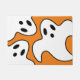 Een Happy Halloween-slaapzool met zwarte en witte spooksilhouettes tegen een felle oranje achtergrond is geweldig om je thuis te verfraaien voor de meest schitterende vakantie van het jaar.