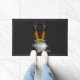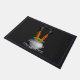 Halloween deurmat wordt getoond met een heks in een borrelende pot print op een lei achtergrond kleur. Pas deze mat aan of koop zoals hij is.