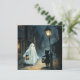 Halloween scène met een spook en kat vergadering in de straat