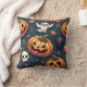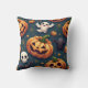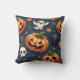 Patroon interieur kussen met Halloween pompoen en spook bat schedel
