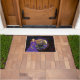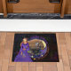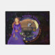 Bekijk deze prachtige Halloween funky DEURMAT met een Halloween-heks in een paarse jurk die een brouwsel maakt, met een boompje, een maanuil en een kruipende paarse spin en een poes op de achtergrond. Dit kan niet alleen uw verjaardagsfeestdecor verbeteren, maar ook de Halloween-tijd.