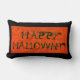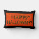 Halloween Lumbar Pillow REVSERSIBLE (zelfde afbeelding aan beide kanten) Een ruim 21" x 13" en verpakt met Halloween charm. Kijk dichtbij en je zult zien dat de letters figuren zijn die Happy Halloween spellen. De gastheren drijven op de achtergrond met een paar woorden die vaak bij Halloween worden gehoord.Dit exemplaar geschreven ontwerp is exclusief aan Zazzle en is gedrukt van mijn oorspronkelijk werk.Het Recht van het Exemplaar " 2010 "