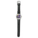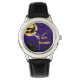 Kinder’ roestvrijstalen zwart lederen bandhorloge met een afbeelding vleermuizen en een silhouet van een heks rijden haar bezem over een volle maan hoog in een paarse lucht boven een verlicht spooky herenhuis. Optioneel sentiment. Zie bijpassende vierkante knop, vierkante bedel, vierkante enkelzijdige acryl sleutelhanger en vierkante ketting. Bekijk het gehele Halloween Watch collectie onder de categorie ACCESSOIRES in de sectie FEESTDAGEN.