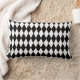 Ideaal om je thuis te bezorgen voor die speciale halloween party, gebruik deze feestelijke kussen die zijn afgebeeld in een zwart-wit harlequin diamanten afdrukontwerp. Pas dit object aan of koop zoals het is.