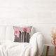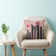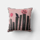 Halloween scène met hek, kraai, volle maan, & pompoen op een leuke roze achtergrond gooi kussen.