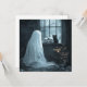 Halloween scène met een geest, kat en schedels