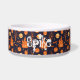 Dit Halloweenpatroon bevat klassieke en schattige spookachtige dingen in silhouetten van sinaasappel en geel op een zwarte achtergrond. Een spookhuis omringd door de maan, bomen, vleermuizen en pompoenen. Leuke en feestelijke hondenbak voor het Halloween seizoen! Bekijk mijn winkel voor meer coole Halloween-goodies!