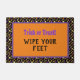 Dit halloween Season outdoor doormat kenmerkt een achtergrond van het "trick or treat"snoep met een oranje en paarse bekleding voor de tekst " Trick or treat veegt uw voeten" Dit leuke doormat zal met andere oranje en zwarte Halloween decoraties coördineren.