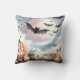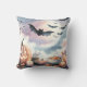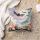 Een grillige waterverf Halloween-scene met een grote, gloeiende volle maan omringd door zachte wolken. Een gesneden pompoen met een vrolijk gezicht zit naast kleinere pompoenen. Verschillende vleermuizen fladderen door de lucht, waardoor de spookachtige sfeer wordt versterkt. De algehele sfeer is feestelijk en betoverend, het vastleggen van de geest van Halloween. Ontworpen door kunstenaar Danguole Serstinskaja.