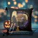 Is je verjaardag in oktober ? Dit is een geweldig ontwerp met een Halloween-heks in een zwarte jurk die een brouwsel maakt, met een boom, een maanuil en een kruipende paarse spin op de achtergrond. U kunt alle tekst aan de voor- en achterkant van het kussen bijwerken.