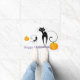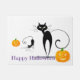 Halloween deurmat getoond met een leuke feestelijke pompoenen en zwarte katten print. Pas deze mat aan of koop zoals het is.