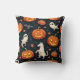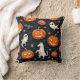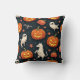Dit is een kussenkussen voor Halloween. Het heeft een stijlvol ontwerp dat een pompoen en een geest op een zwarte achtergrond combineert. Fijne Halloween!