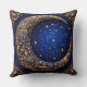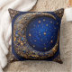 Mooi ontworpen design gecentreerd rond een wassende maan tegen een diepblauwe achtergrond. De maan is ingewikkeld versierd met gouden wervelende patronen, bloemmotieven en kleine versieringen die het een rijk, luxueus uiterlijk geven.