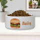 Hamburger met kaasillustratie en aangepaste naam voerbakje