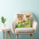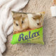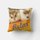Fun en schattig hamsterkussen. Afbeelding met een schattige bruine en witte robo hamster. Ze heeft een schattige roze neus en lange witte whiskers. De kussen hebben een bericht "Relax and Be Happy". De kleurrijke oranje en groene geometrische design geven de kussen een extra helder uiterlijk.