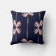 Hand Drawn Pink Wild Flowers Navy Blue Throw Pillow.