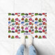 Een schattig geïllustreerd marker kunstpatroon van portemonnees, tassen, tassen, geletzakken, knapzakken, nostalgie mini rugzakken, handtassen, messenger bags, zakken, designer mode tas stijlen en meer leuke hand getekende illustratie artsy ontwerp luxe leuke leuke deurmat. Krijg een epische cartoon stijl deurmat vandaag.