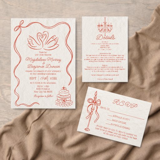 Retro Hand-Drawn Sunset Orange WeddingOntworpen door Margarita A