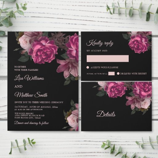 Hand Drawn Dark Romantic Roses WeddingOntworpen door Nina Baydur