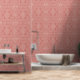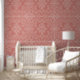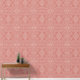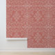 Dit behang heeft een handgetekend bloemendamast lijnpatroon in crème op terracotta voor een boho-vibe.