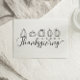 Thanksgiving wenskaart met de woorden "Happy Thanksgiving" en handgetekende pompoenen. Voeg je eigen bericht aan de achterkant toe.