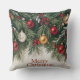 Decorate your home with the elegance of this "Merry Christmas" throw pillow. This unique design features a lush, hanging pine garland, adorned with traditional red, gold, and white ornaments and berries. The beautiful arrangement frames the text at the bottom, offering a fresh take on classic holiday imagery. Perfect for adding a touch of rustic sophistication and holiday spirit to any room. A festive statement piece for a cozy home.